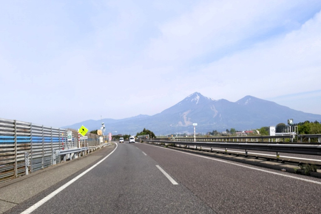 午前8時。磐越道を走っていると、右手に磐梯山が姿を現しました。