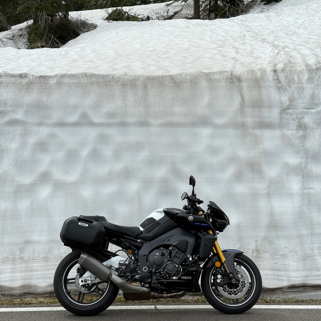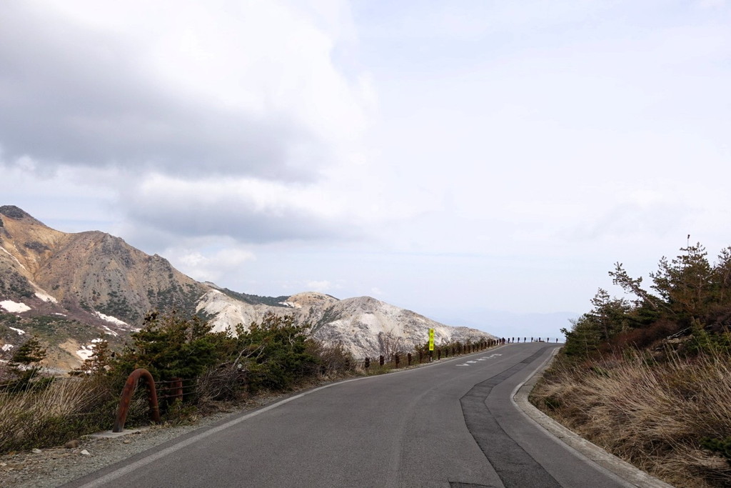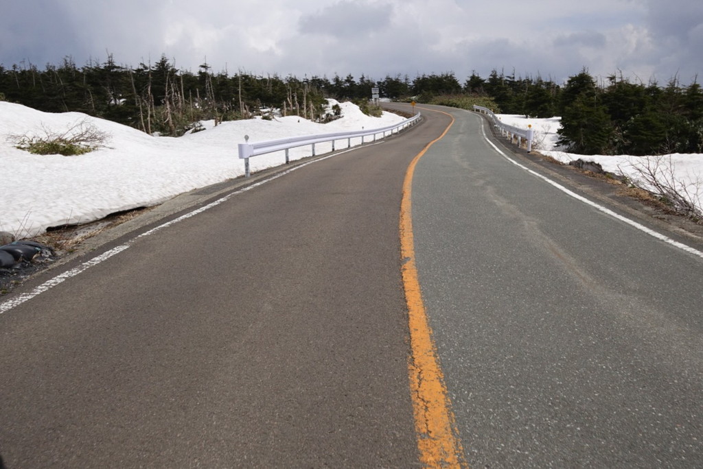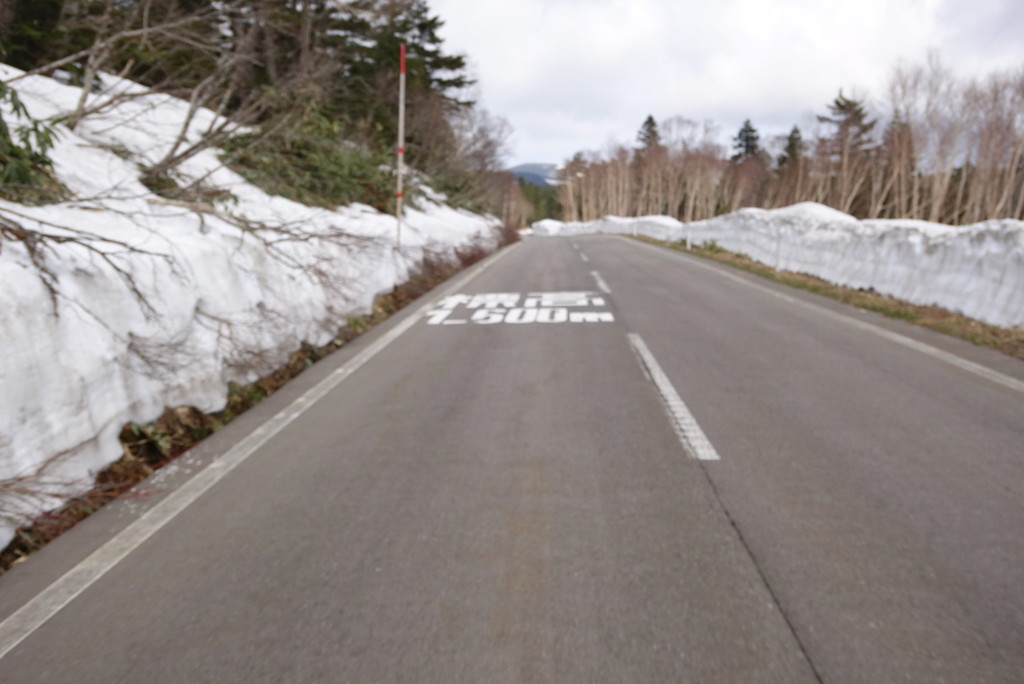 高度1,600mまで来ると、路肩に残雪が現れ、テンションはさらにUP!