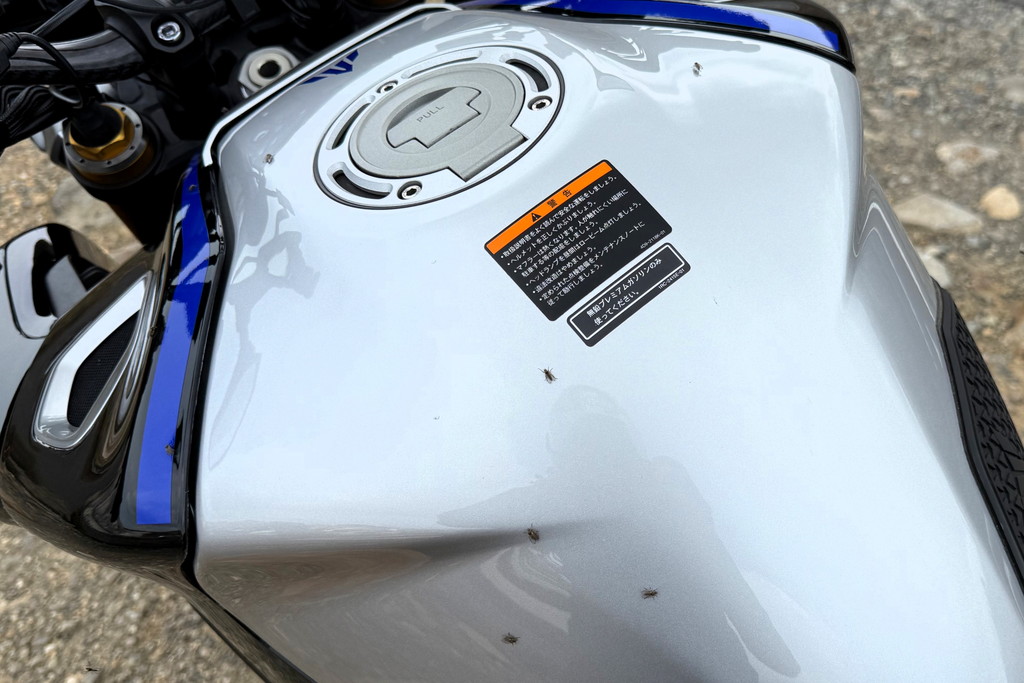絶景に浸りたいところですが、ここでも小虫の猛攻が続きます。タンクの上どころか、ヘルメットの中にも入ってくる始末。