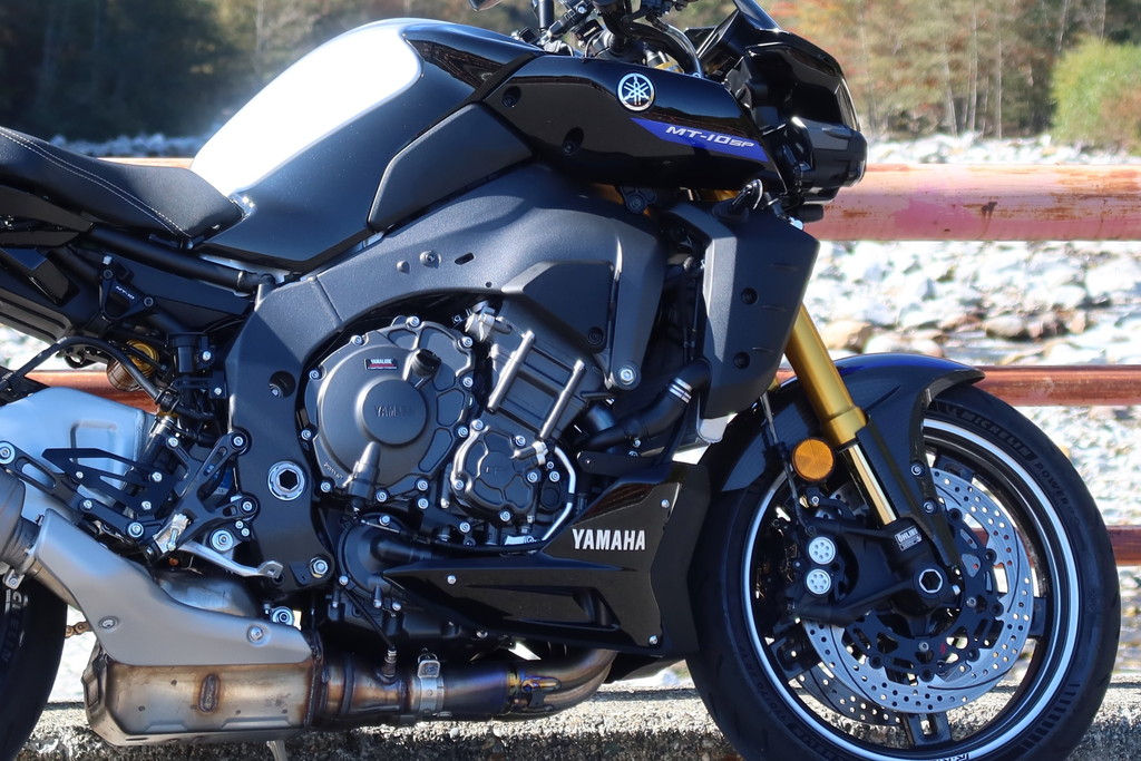 しかし、MT-10では幅広い道を緊張を強いられずに走れますし、YZF-R1譲りのリッチな足回りを味わうことができます。