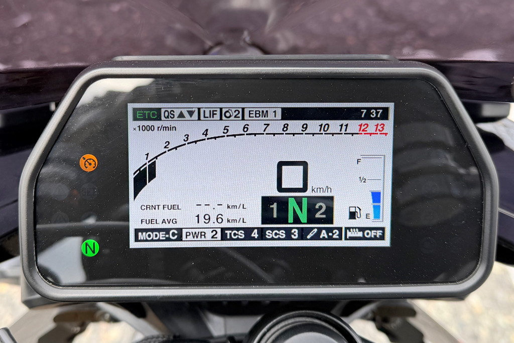 タンク容量は17Lもありますが、200kmを超えたあたりでFランプが点灯します。ワインディング中心の走りなら、150km足らずで点くことも珍しくありません。